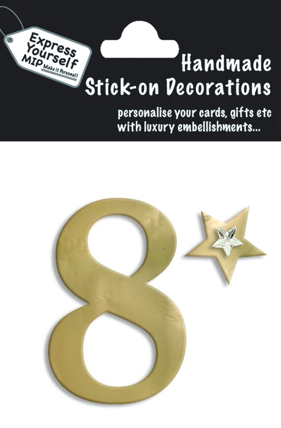 Handmade stick on numbers - Mini Gold Foil Number 8 listed in: